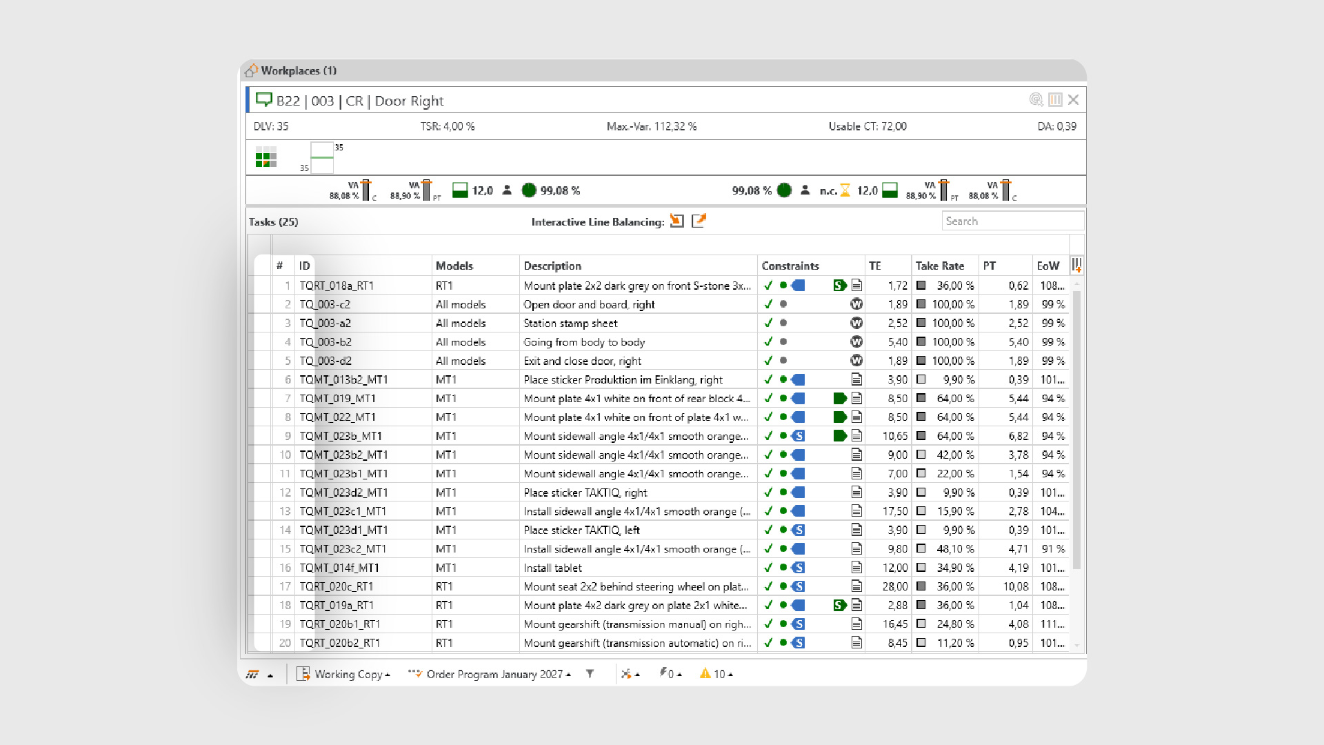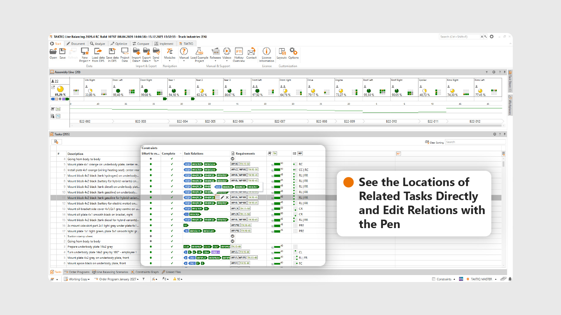 Mit dem Release 2026.4 rücken Montagerestriktionen genau dorthin, wo sie im Alltag gebraucht werden: direkt in die Avo‑Listen. Ob im geöffneten Arbeitsplatz, in der Ansicht Arbeitsvorgänge oder in den Avo‑Speichern – Restriktionen lassen sich nun unmittelbar dort einsehen und bearbeiten, wo auch die Austaktung und Analyse erfolgt.